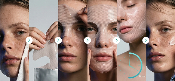 Лифтинг-маска для лица состоит из двух частей и в точности повторяет контуры лица, обеспечивая идеальное прилегание. Ключевой актив — армированный коллагеновый гидрогель, обогащенный активными веществами, которые начинают действовать сразу при контакте с кожей.