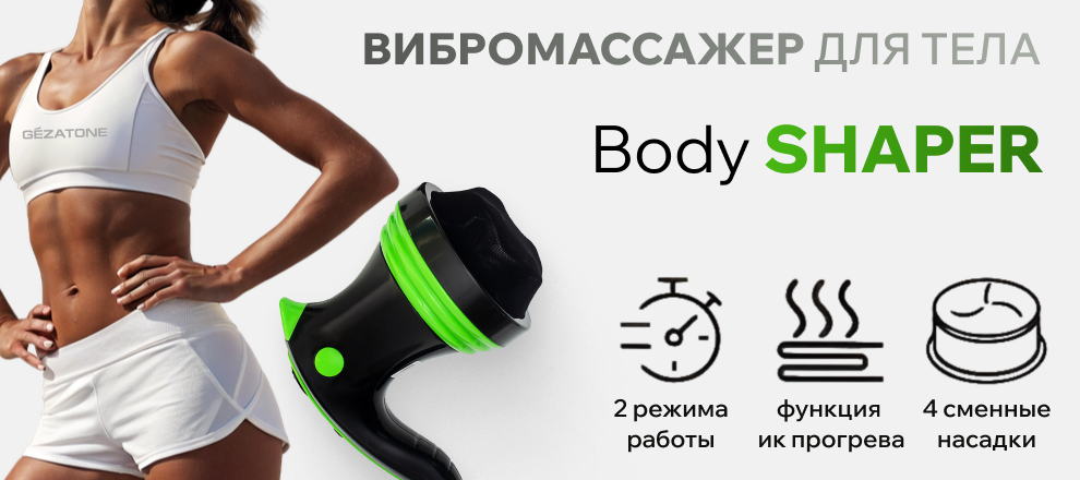 Ручной вибромассажер для тела Body Shaper AMG 125 от известного бренда Gezatone станет настоящим спасение. С его помощью можно избавиться от мышечных спазмов, скованности, ломоты в суставах и мышцах, проработать труднодоступные участки тела, снять отечность, скорректировать фигуру, уменьшить признаки целлюлита, улучшить настроение, снизить стресс и уменьшить усталость. 4 насадки обеспечивают профессиональный массаж тела, включая общий тонизирующий и расслабляющий массаж. Эффективен как антицеллюлитный массажер.
