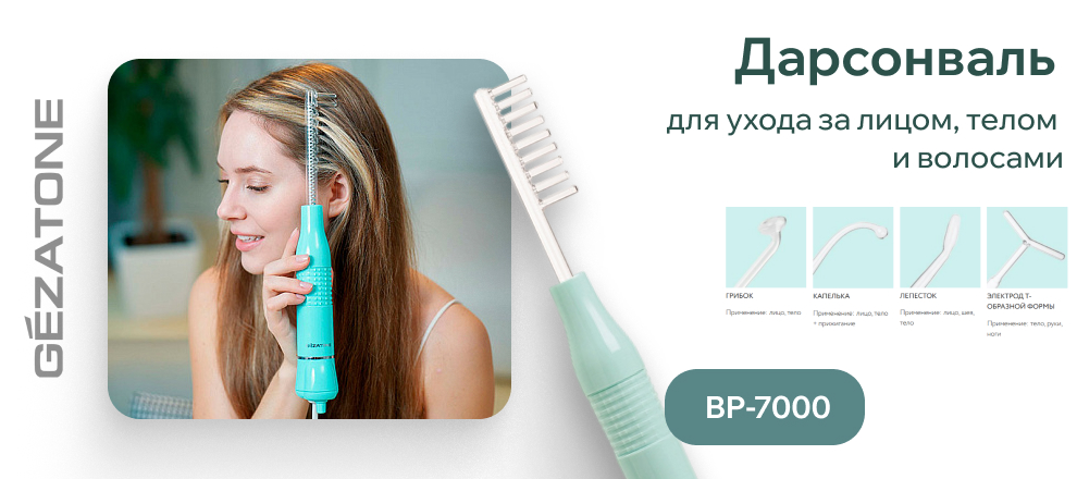 Сам сеанс дарсонвализации проводят с помощью портативного аппарата, оснащенного стеклянной насадкой-гребнем, через которую проходят слабые высокочастотные импульсы тока. Такая насадка есть в модели BP-7000 от Gezatone.