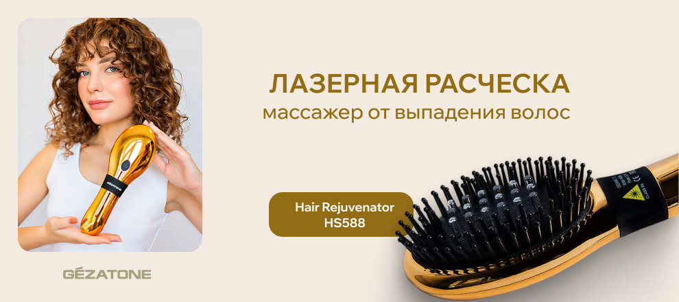 При заметном повреждении и выпадении волос обратите внимание на лазерную расческу от алопеции Hair Rejuvenator HS588 Gezatone. Профессиональный прибор для домашнего ухода воздействует на кожу головы низкоинтенсивным лазерным светом и зеленым спектром света (хромотерапия). Лазер, в комплексе со светотерапией, производит стимулирующее, антибактериальное, себорегулирующее, сосудоукрепляющее, противовоспалительное действие.