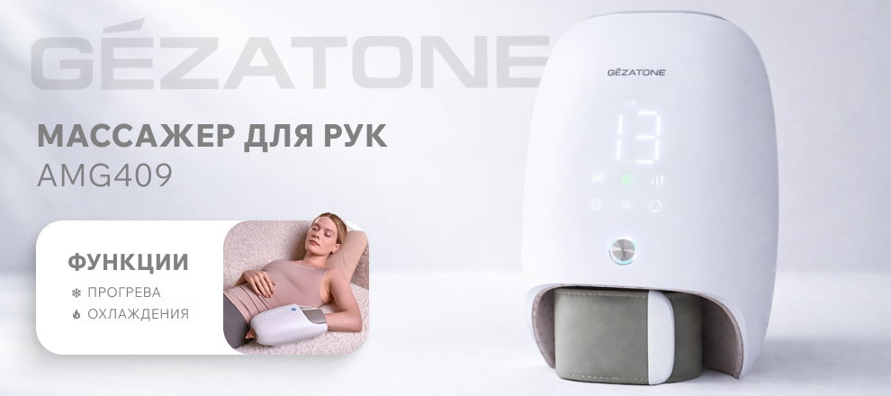 Одним из лучших домашних девайсов считается беспроводной массажер для рук AMG409 от бренда Gezatone. Он не заменяет лечение, упражнения и разминку, но усиливает их эффект, облегчает состояние после работы или тренировки и предотвращает развитие хронических проблем с кистями. Массажер сочетает в себе несколько видов воздействия: глубокую, но мягкую прессотерапию, роликовый массаж ладоней, два уровня прогрева для усиления расслабления и режим обдува.
