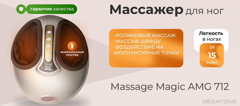 Massage Magic AMG712 от Gezatone — это отличный выбор для людей с сидячей работой или повышенной нагрузкой на ноги. Массажер сочетает в себе три вида воздействия: роликовый массаж, пневмокомпрессию и инфракрасный прогрев, что помогает решить такие проблемы, как: