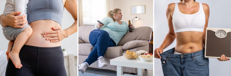 Дряблость на животе возникает из-за отвисания и деформации кожи. Визуализируются кожные складки, растяжки, поверхность живота растягивается.