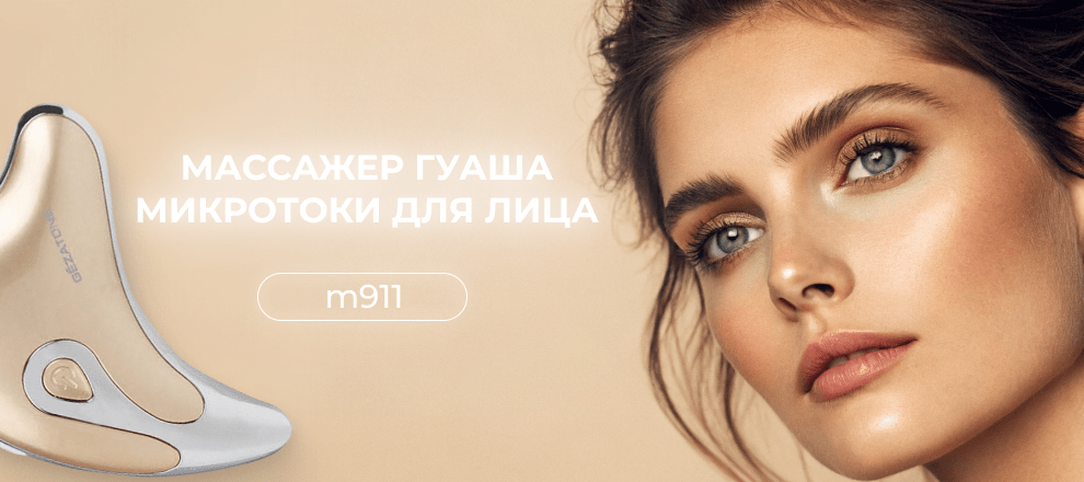 Оригинальный портативный прибор Gezatone m 911 Gua Sha для комплексного ухода за кожей лица и шеи с использованием профессиональных методик: ионофореза, вибрационного массажа и глубокого прогрева тканей, выполнен в форме инструмента, используемого для косметического массажа гуаша.