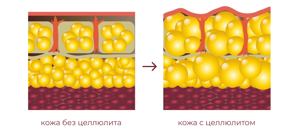 С точки зрения дерматологии, целлюлит формируется из-за изменений в структуре соединительной ткани и подкожно-жировой клетчатки.