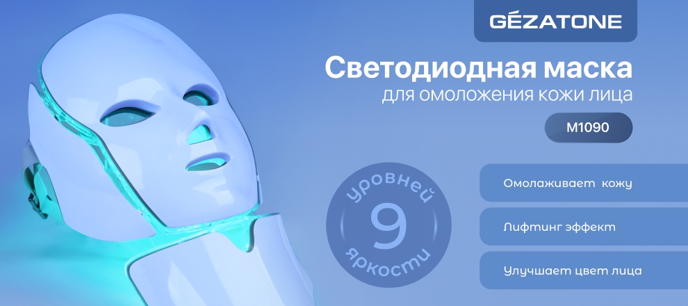Светодиодная маска для омоложения кожи лица m1090, Gezatone