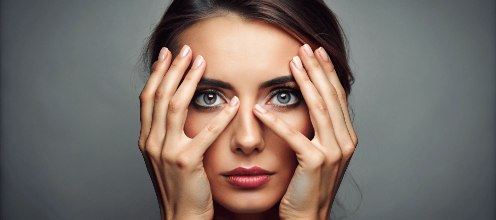 Дискомфортные ощущения и постепенное снижение зрения сопровождаются возрастными изменениями в области вокруг глаз. Из-за трудностей с фокусировкой человек инстинктивно щурит глаза, что приводит к появлению ранних «гусиных лапок», опущению век. На фоне застойных явлений и ухудшения кровообращения в периорбитальной зоне образуются малярные мешки и темные круги под глазами, наблюдается истончение кожи. Возникает визуальный эффект «усталого хмурого взгляда», когда даже в хорошем настроении человек выглядит, как будто-то всем недоволен.
