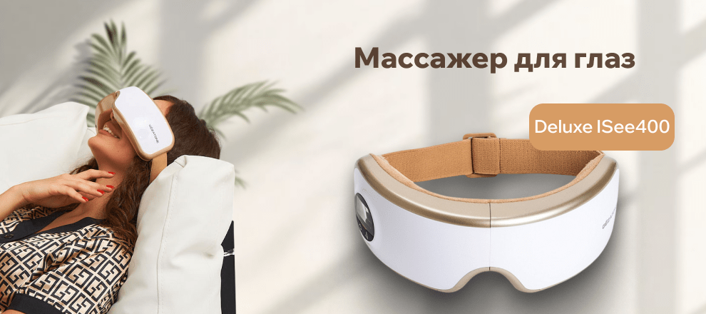 Премиальные массажные очки Deluxe ISee 400 имеют идеальную анатомическую конструкцию, оснащены лучшими технологиями для заботы о красоте и здоровье глаз. Прибор оснащен функцией прессотерапии глаз, вибромассажа, деликатного прогрева тканей и аудиотерапии.