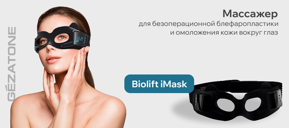 При возрастных изменениях в зоне вокруг глаз идеальным решением станет миостимуляция, которая, в отличие от микротоков, наиболее эффективно помогает от провисания кожи. В домашних условиях процедуру можно проводить с помощью премиальной маски-миостимулятора для зоны вокруг глаз Biolift iMask.