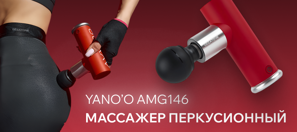 7. Перкуссионный массажер-пистолет для тела электрический YANO’O AMG146, Gezatone