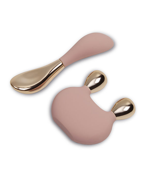 Дуэт массажеров Гуаша для лица, области глаз и шеи: крио-аппликатор и скульптурирующий массажер с двумя сферами, наполнены гелем для длительного сохранения температуры.
