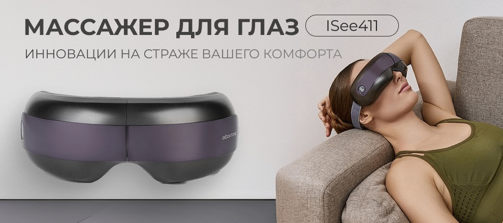 Массажер ISee410 сочетает функции лимфодренажного массажа и глубокого прогрева, что помогает снять напряжение, улучшить здоровье глаз. Встроенная опция Bluetooth позволяет слушать музыку прямо во время сеанса.