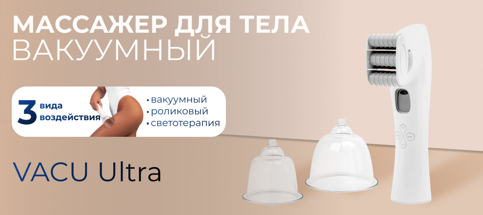VACU ULTRA – это инновационный вакуумный массажер, сочетающий несколько эффективных техник для борьбы с целлюлитом и коррекции фигуры.